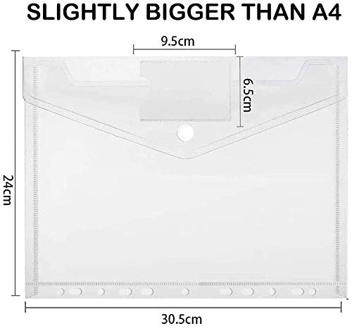 Buste Bottone A4,20Pcs Fogli Trasparenti A4 per Raccoglitore,Cartellina Portadocumenti A4 Plastica,Buste Portadocumenti Plastica,Cartelline Trasparenti,Buste A4 Trasparenti (A)