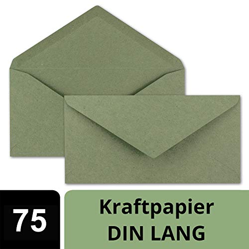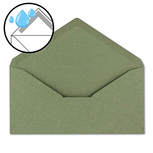Buste in carta kraft verde vintage di alta qualità, formato DIN lungo 11 x 22 cm (110 x 220 mm), adatte per carta DIN A4 piegata.