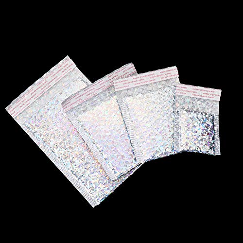 10 buste imbottite a bolle d'aria, con imbottitura in lamina metallizzata, 12 x 12 cm, 15 x 13 cm, 15 x 20 cm, 18 x 23 cm, 12 x 12 cm, 15 x 20 cm, 18 x 13 cm, 12 x 12 cm.