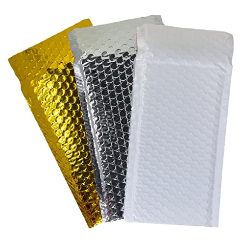 Buste imbottite per spedizioni (12 x 20 cm - 6 pezzi, oro - argento - bianco)