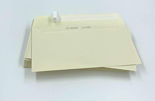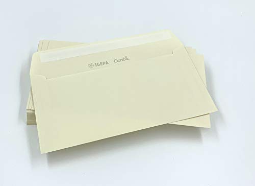250 buste per lettera, bianco perlato, colore bianco antico, crema chiaro, 220 x 110 mm, strip adesivo, Caribic d'IGEPA