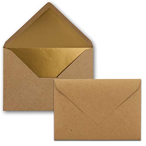 25 buste da lettera, formato DIN C6, 11,4 x 16,2 mm, chiusura da inumidire, rivestimento metallizzato dorato, senza finestra, per inviti, colore: marrone