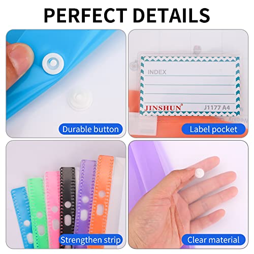 【Design accurato】 Ogni portafoglio in plastica A4 con una tasca per etichetta per classificare e identificare il tuo documento e un pulsante a scatto per proteggere il contenuto. La cartella documenti trasparente mantiene i contenuti visibili e facilita la ricerca dei documenti.