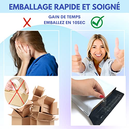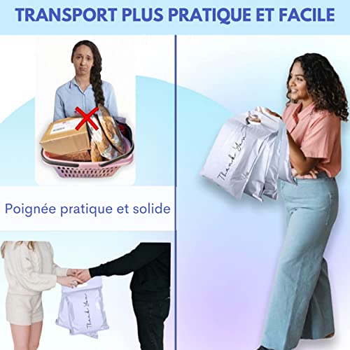 Confezione da 50 pezzi: dimensioni di una busta bianca 26 x 35 cm (inclusa patta 4 cm) + 7 cm di maniglia che rende la borsa più facilmente trasportabile. Pratico, i vostri clienti e voi stessi sarete soddisfatti di poter indossare questa borsa con una sola mano. Dal vostro lato, che guadagnare tempo. Veloce, non dovrete più scottare da tutti i lati i vostri vecchi imballaggi. Inserite i vostri articoli nella borsa, incollate la striscia autoadesiva e il gioco è fatto