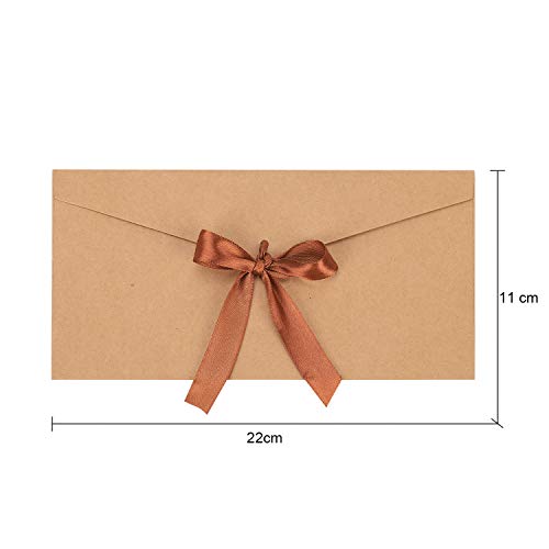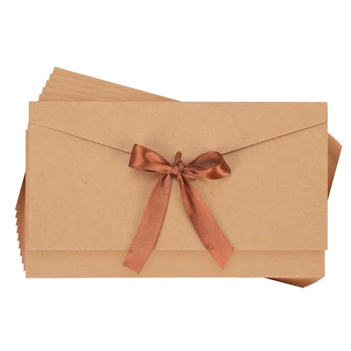 10 buste quadrate per biglietti di auguri con nastro, ideali come regalo di auguri, per Natale, anniversario, matrimonio, compleanno, ringraziamento, Khaki (20 x 11 cm)