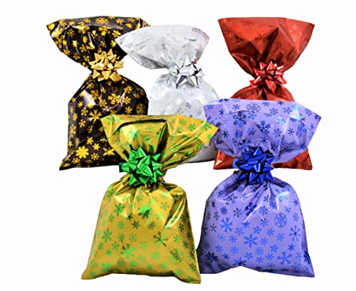 Buste regalo METAL NATALE, con Striscia Adesiva, Colori Assortiti, Dimensione cm 40x57,5+4 - Pezzi 50