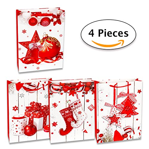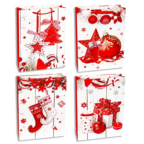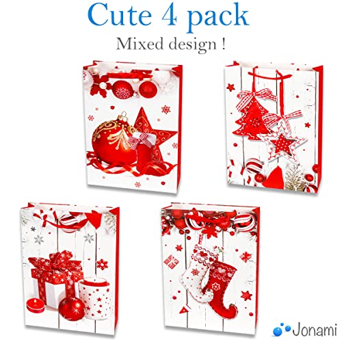 Buste Regalo per Natale XL Taglia Extra Large - 4 Pezzi - Sacchetti Regalo in 4 Design Natalizi - Borse e Scatole di Carta per Doni di Natale o Carta Regalo (42x30x12cm)