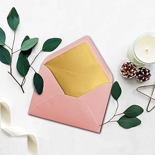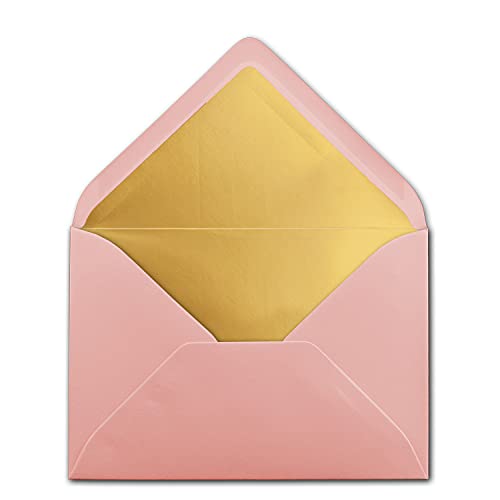 50 buste DIN C5 15,7 x 22,5 cm, in rosa antico (rosa) con fodera in seta dorata, adesivo umettabile, buste vuote, buste postali senza finestra in formato C5, marca FarbenFroh by GUSTAV NEUSER
