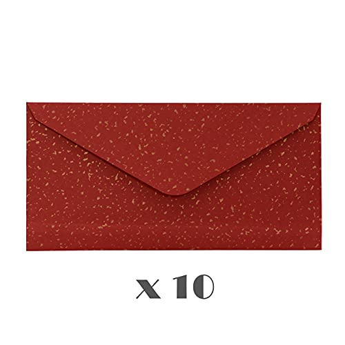 10 buste rosse con rivestimento metallico oro 110 x 220 mm per biglietti di auguri biglietti di auguri natalizi buoni invito