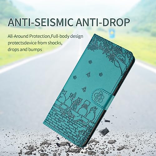 Butnyeoe Cover per Samsung Galaxy S22 Ultra 5G Libro,Gatti/Fiori Motivo in Rilievo Custodia,PU Pelle Protettiva Portafoglio Flip Wallet Case Con Slot per Schede e Magnetica Supporto,Blu-Verde