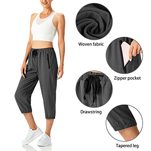 Butrends Pantaloni da jogging leggeri da donna, pantaloni da jogging da allenamento casual 3/4, protezione solare UPF 50+, pantaloni da trekking con tasche con cerniera Grigio XL
