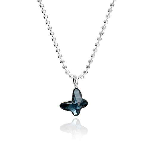 Butterfly Bambine Ragazze argento Collana Argento vero Swarovski Elements originali ciondolo piccola Farfalla blu lunghezza regolabile Packaging sostenibile Regalo di comunione
