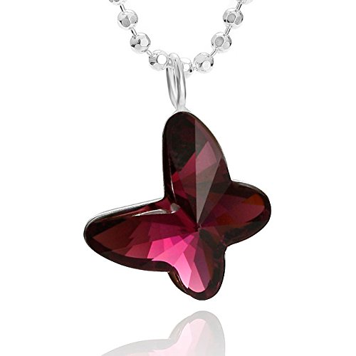 Butterfly Bambine Ragazze Collana Argento 925 Swarovski Elements originali ciondolo Farfalla rosso-porpora lunghezza regolabile Packaging ecologico Regalo di comunione