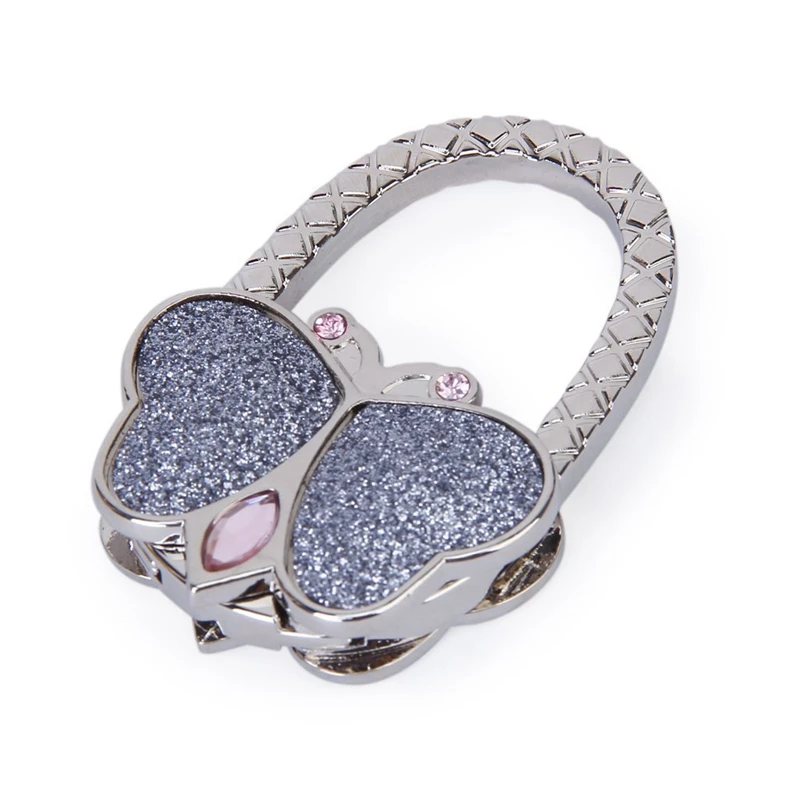 Butterfly Folding Hanger Holder Hook Handbag Bag Rhinestone (Silver)