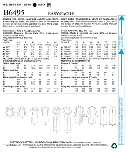 Butterick Patterns 6495 ZZ Misses Top/Vestito/Tuta/Giacca e Pantaloni, Multicolore, Taglie Grandi - 2 x -Large