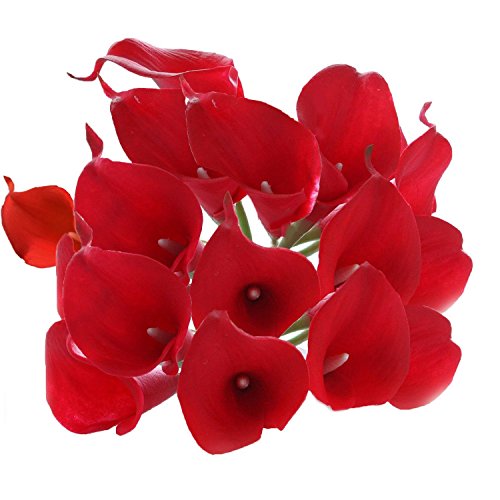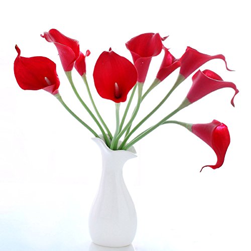 Butterme Decor 10 pezzi in lattice reale tocco di classe Calla Lily artificiale nuziale Wedding Bouquet partito della casa (Rosso)