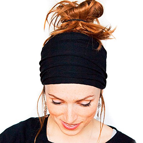 Butterme Fascia Elastica Fascia dell'involucro della Testa del Sudore Teens Ragazze delle Donne Wrap Fascia per lo Sport o la Moda, lo yoga o di viaggio (Nero)