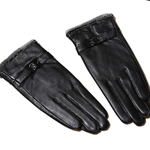 Butterme Moda Donna agnello touchscreen Texting Guanti in pelle Winter Driving fodera in pile Guanti per Iphone Smartphone (Nero)