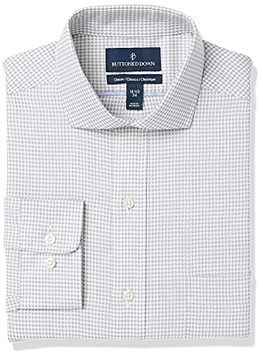 Buttoned Down Classic Fit Button Collar-Pattern Dress Shirts Camicia, Grigio (Grey Houndstouth), 18.5" Neck 38" Sleeve