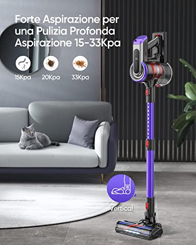 Buture Aspirapolvere Senza Fili, 33Kpa/400W Potente Aspirapolvere Senza Fili con Touch e Display a LED, Batteria Rimovibile 55 Minuti, Aspirapolvere 4 in 1 per Peli di Animali Domestici/Pavimento/Moquette/Divano
