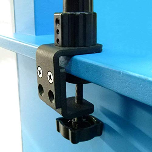 La base di montaggio con morsetto a C si fissa su entrambe le superfici a bordi piatti, montanti tondi e angolati, barre e binari - utilizzata su scaffali e scrivania / ripiani