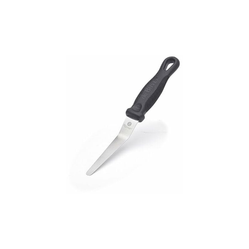 Mini spatola ad angolo, con lama appuntita di precisione. Lunghezza della lama: 8 cm. Lama in acciaio inossidabile lucidato, resistente e duraturo, di qualità X20 Cr13. Superficie: lo rende facile da riporre e previene la corrosione. Manico: in poliamide rinforzato con trama in fibra di vetro, design antiscivolo, effetto carbone, indentazione per riposare il pollice, e sperone per evitare che il dito scivoli sulla lama. Da lavare in lavandino. Dimensioni: 21 x 2 cm. Peso: 0,04 kg.