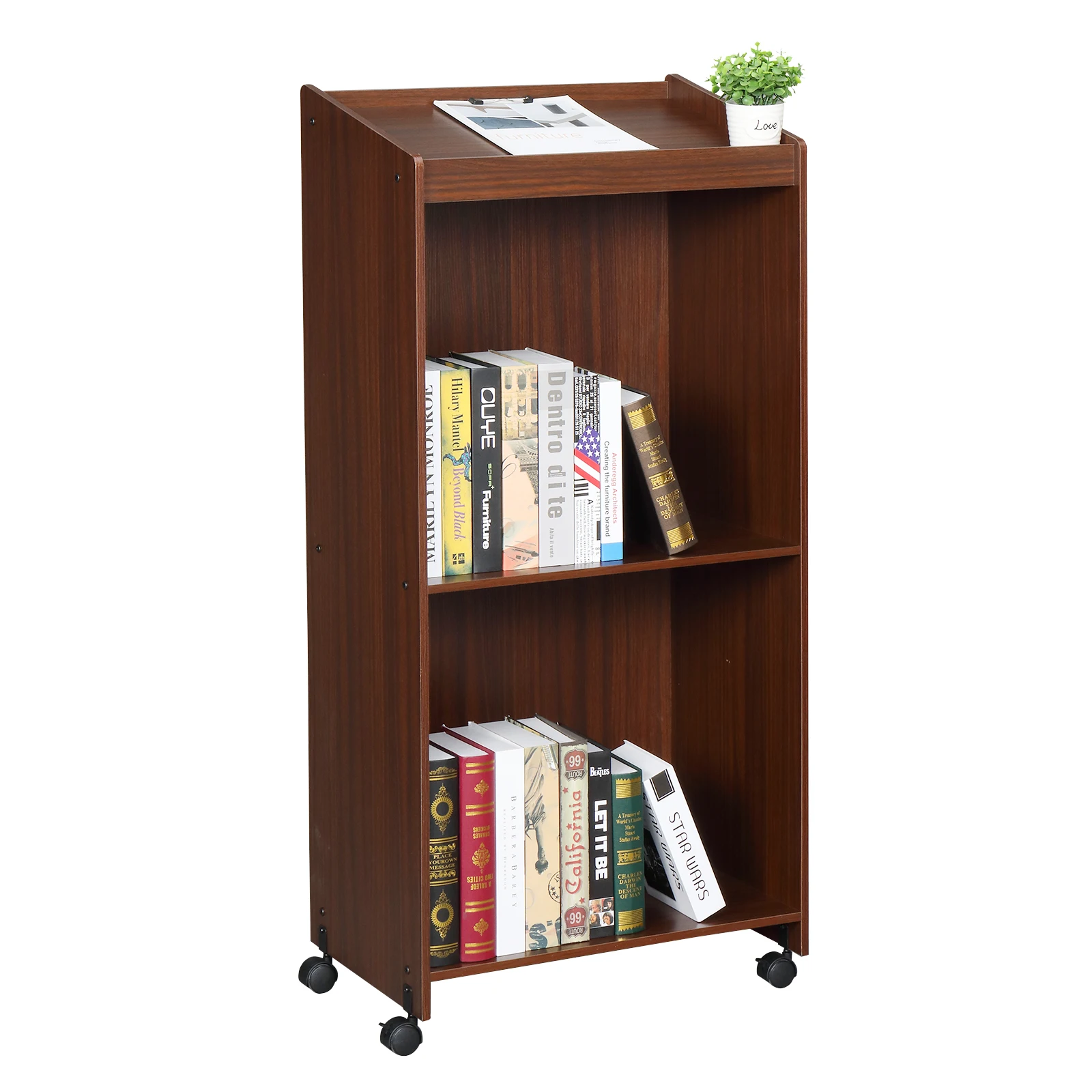 BUYTOO Stand Up Desk Wooden Removable With Compartments Podium Table Walnut