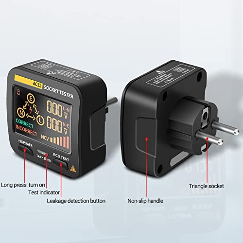 BuyWeek Tester per Prese AC11, Tester di Tensione Elettrico intelligente con Rilevatore di Test di Tensione per Display LCD per Casa, Fabbriche(EU PLUG)