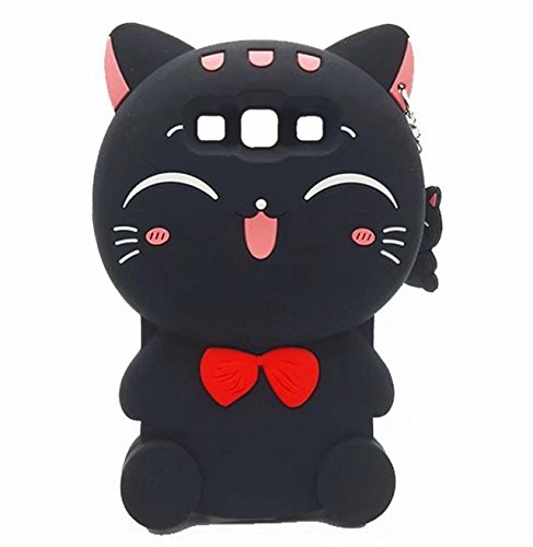Buywin, splendida custodia in silicone morbido con design di animali personaggi dei cartoni animati 3D per Samsung Galaxy ON5, silicone, Lucky Fortune Cat -Black, Samsung Galaxy Grand Prime G530 G530H G5308W