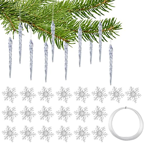 BUZIFU Decorazione per albero di Natale Acrilico Decorazioni Natalizie e Natale Ghiaccioli Ornamenti Acrilico Fiocco di Neve Ghiaccioli per Decorazioni per Alberi di Natale