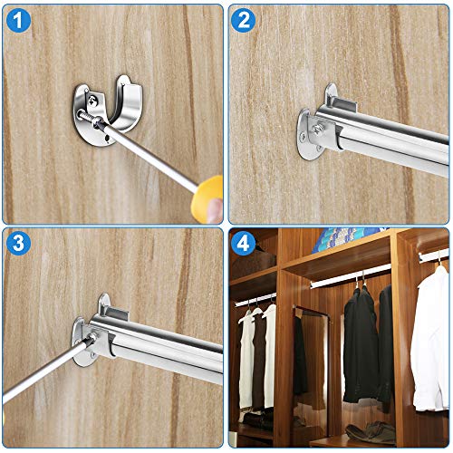 BUZIFU 4 Pezzi Asta Armadio Supporto in Acciaio Inox Asta di Sostegno a Forma di U Presa Flangia di Supporto Asta Supporto con Viti, Facile Installazione e rimozione Rapida, 27mm