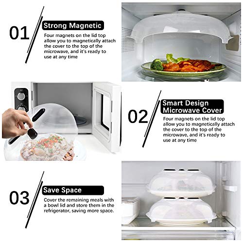 Design magnetico e facile da riporre: sulla parte superiore del coperchio del microonde si trovano quattro magneti che si attaccano bene alla parte superiore del forno a microonde senza bloccare le aperture di ventilazione. Rimuovi quando hai bisogno di cucinare, e conservalo sul forno a microonde dopo la cottura, che può essere comodamente conservato nel forno a microonde.