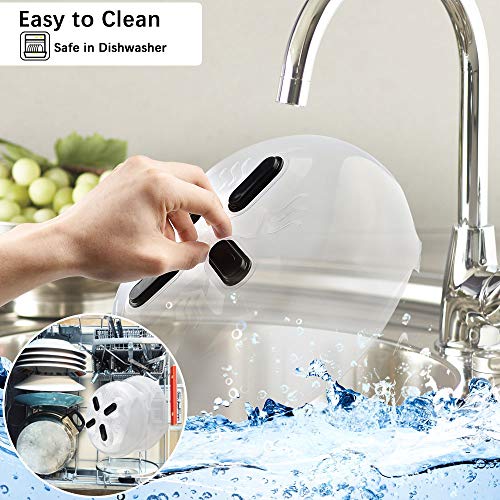 Materiale di qualità alimentare e facile da pulire: la nostra copertura per forno a microonde è realizzata in polipropilene, sicura, atossica, resistente al calore e durevole. Il materiale PP è un materiale sicuro per contenitori alimentari riconosciuto a livello mondiale e non contiene BPA. Si può lavare a mano o nella parte superiore della lavastoviglie.