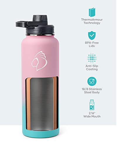 BUZIO 1180ml Bottiglia isolata in acciaio inossidabile Bottiglia sportiva impermeabile BPA Free isolata sottovuoto a doppia parete in acciaio inossidabile, Rosa Blu