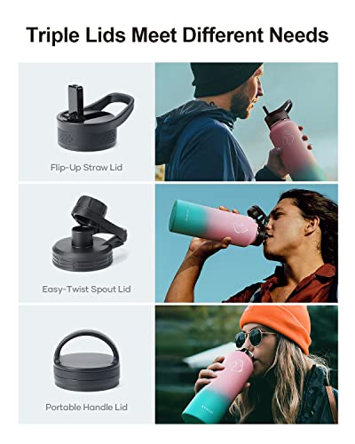 Confezione da 3 tappi, 100% a prova di perdite: la borraccia BUZIO in acciaio inossidabile viene fornita con 3 coperchi: coperchio con manico portatile, coperchio con beccuccio facile da ruotare e coperchio con cannuccia ribaltabile per incontrare campeggio, escursionismo, ciclismo, sport fitness e altro ancora. Ogni coperchio ha una guarnizione ispessita a 360° per il 100% a prova di perdite.