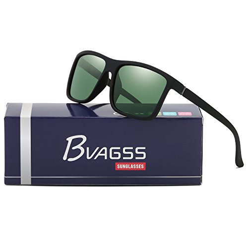 BVAGSS Uomini Polarizzati Occhiali Sole UV400 Protezione Anti-Riflesso Specchio Del Driver (Black Frame With Green Len)