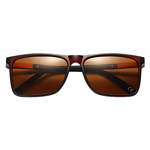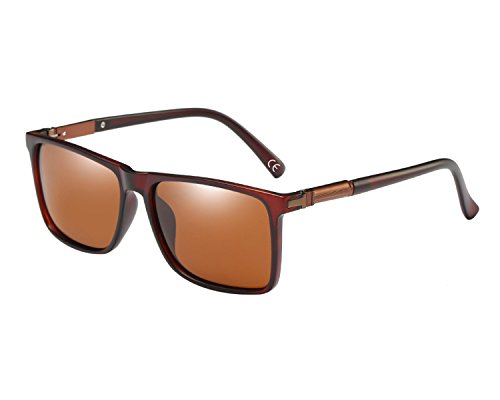 BVAGSS Uomo Occhiali da sole Polarizzate Piazza Al-Mg Metallo Cornice Super Light (Brown Frame With Brown Lens)