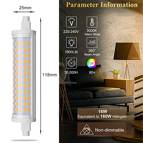 BVCL R7S LED 118mm, 16W R7S LED Lampadina 1600LM AC 220-240V Non dimmerabile senza sfarfallio, equivalente for 150W J118 R7S lampade alogene (Color: Warm White 3000K, Size: 16W 118mm 1pcs)