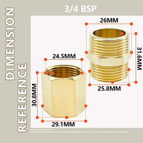 Bwintech 4 pz da 3/4" a 3/4" filettatura femmina e maschio BSP in ottone con nipplo esagonale e connettore di accoppiamento esagonale per conversione di collegamento di tubi