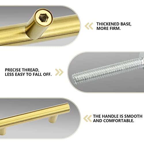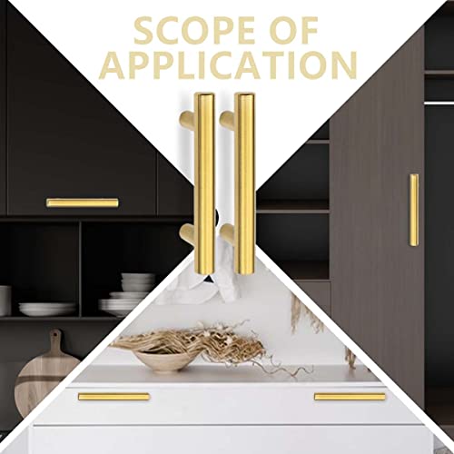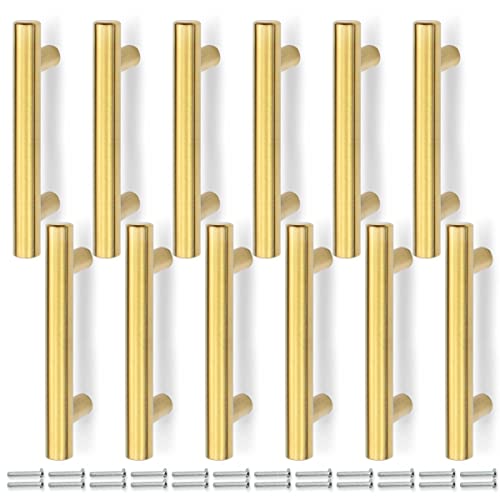 Bwintech 12 maniglie da 100 mm (64 mm) dorate per armadietti da cucina a T, in acciaio inossidabile, ideali per armadietti, cassetti, credenze