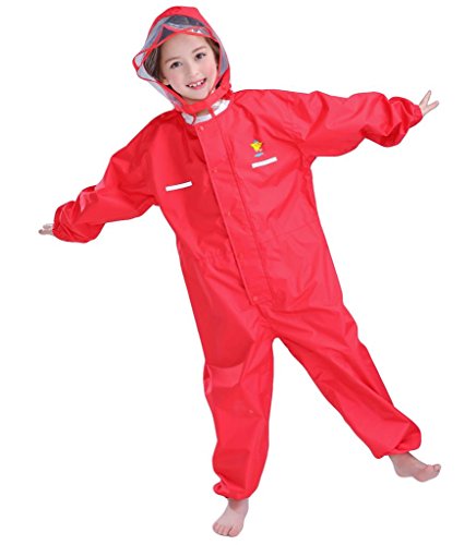 Bwiv Impermeabile con Cappuccio Unisex Giacca da Pioggia con striscie Riflettenti per Bambini e Bambine Rosso(Cappuccio Allungato) XXXL