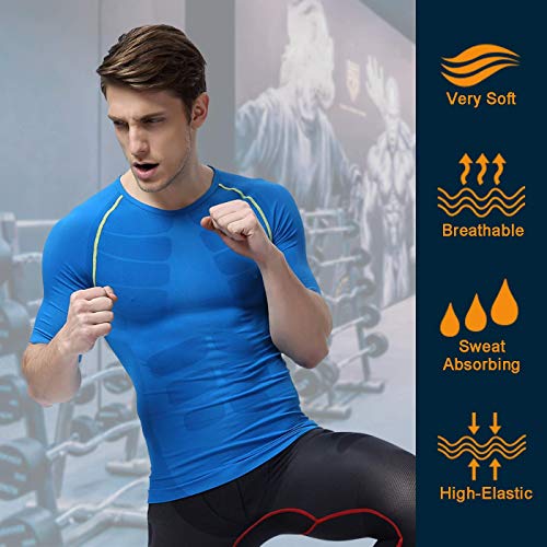 Bwiv Maglietta Compressione Uomo Manica Corta Leggera e Attillata Blu XL