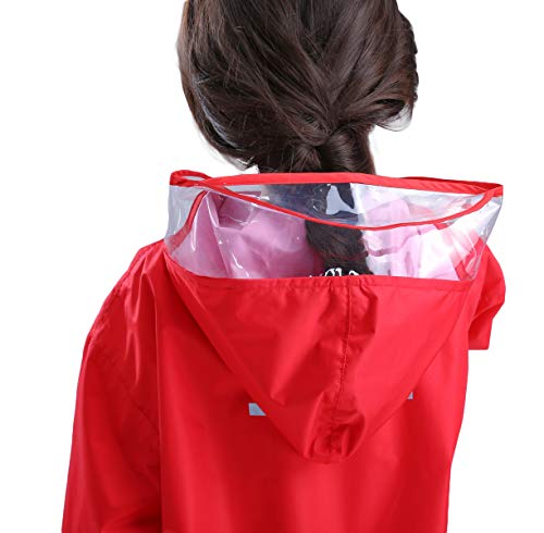 Bwiv Tuta Impermeabile Bambino Impermeabile con Cappuccio Unisex Giacca da Pioggia con striscie Riflettenti per Bambini e Bambine Rosso(Cappuccio Allungato) M