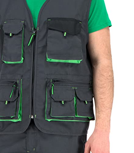 BWOLF Brave - Gilet da lavoro multifunzione da uomo, con chiusura lampo, rinforzato con poliestere Oxford 600D, grigio/verde., S