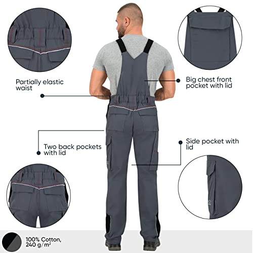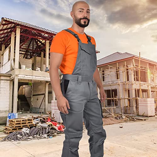 BWOLF Raptor Salopette da Lavoro Uomo 100% Cotone, Tasche Laterali Multifunzionali, Tasche Posteriori e Strisce Riflettenti, grigio., XL
