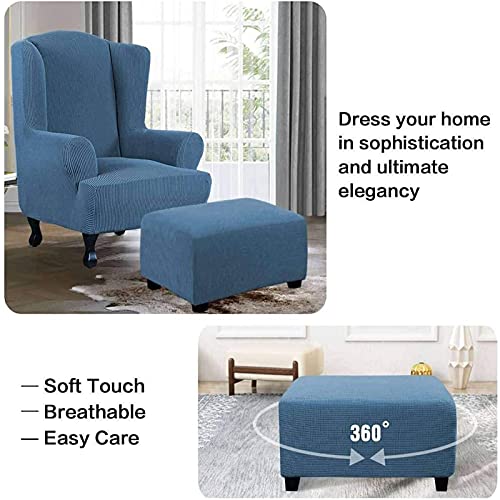 BXFUL Copri Pouf Elasticizzato rttangolare Copri Pouf poggiapiedi Copri Pouf Divano Copri Pouf rett, Lavabile Jacquard Copri Ottomano (LARGE,Blu polvere)