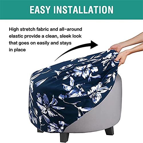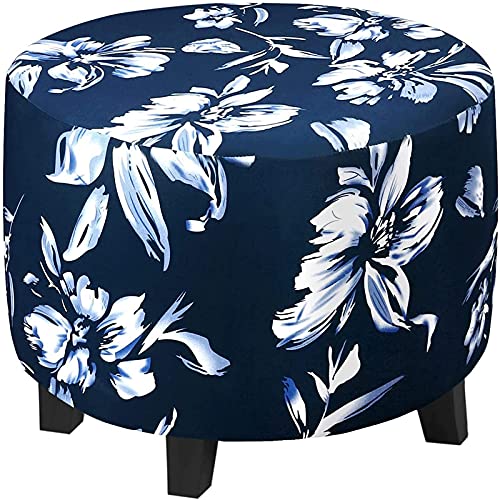 BXFUL Copri Pouf Rotondo Elasticizzato Fodera per ottomana Copertura ottomana Rivestimento ottomano Pouf Lavabile Protettiva Per Poggiapiedi (Medium,Blu navy)