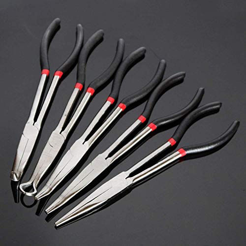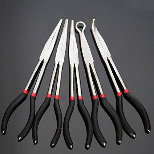 BXU-BG 5 Pezzi Serie di Multifunzione in Acciaio Inox da 11 Pollici Lungo ago dal Naso Curvo Pinza Nose Pinza Rotonda Naso Pinze Auto Strumenti di Riparazione