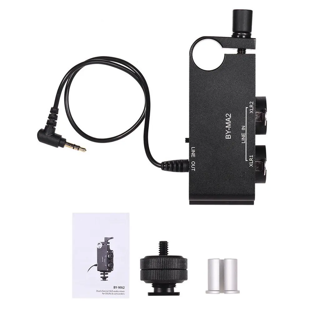 BY-MA2 Dual-Channel Record Audio Mixer XLR Jack 6.5mm to 3.5mm Wireless Microphone System for DSLR Camera