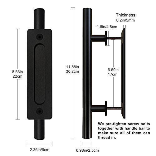 BYARSS Maniglia Porta fienile,Maniglia per Porta del fienile Maniglia per medaglia in Acciaio Inossidabile Nero Maniglia Nera per Accessori per Porte